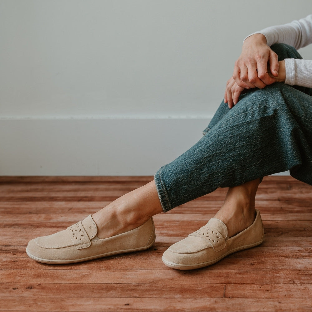 The Be Lenka Bianca is an easy, slip-on, soft suede loafer that elevates your outfits. They are barefoot friendly with a foot-shaped toe box, but in a sleek design that feels feminine. Cut out details add a touch of whimsy, so you can run out the door for errands and everyday life while feeling special. The Bianca wide toe box loafers are perfect for people who want to start taking better care of their feet without compromising their style.