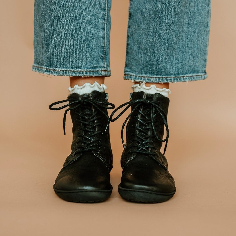 They are a great, extremely adjustable barefoot combat boot that looks pretty cool and is versatile w pants, cropped flares, and midi length dresses. This year I think I'm going to switch out the laces for pink ones. I'm also going to take them to a cobbler to see if they can put some thicker soles on them since i need firmer soles w my foot issues.