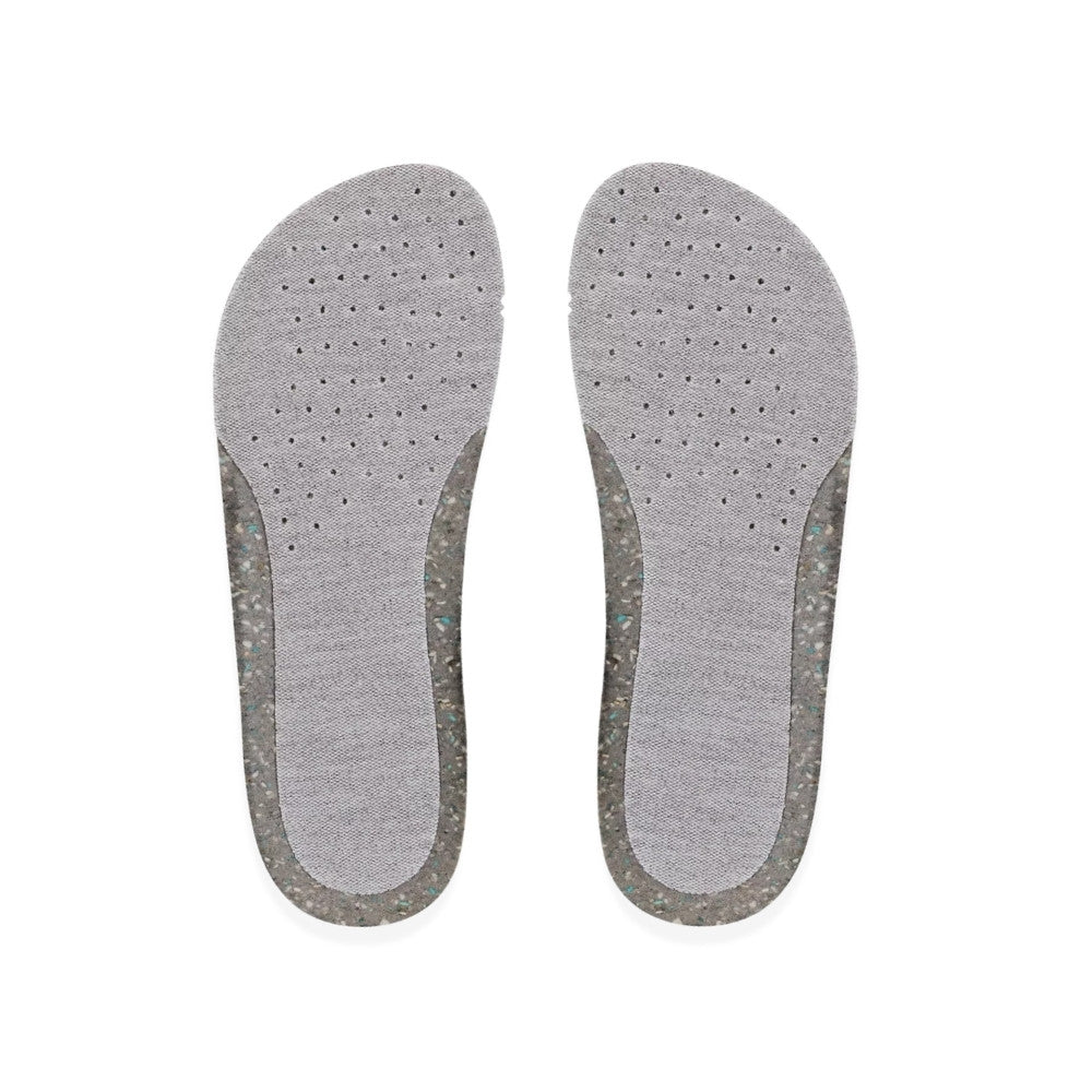 Two grey bamboo and foam Shapen insoles. Backside is shown from above against a white background.
