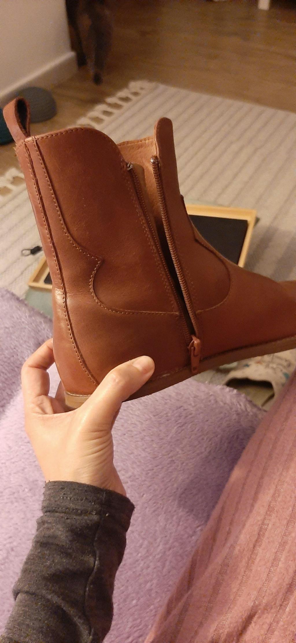 Thanks for the review, Yaiza! We are so sad your heels were hurt on the furst wear. The leather can be a bit stiff at first, so we currently include heel grips into every Faye boots order for this exact reason to be put inside of the heel at that exact spot. This should resolve all your issues! Let us know if this helps and please email us with any further quesitons.