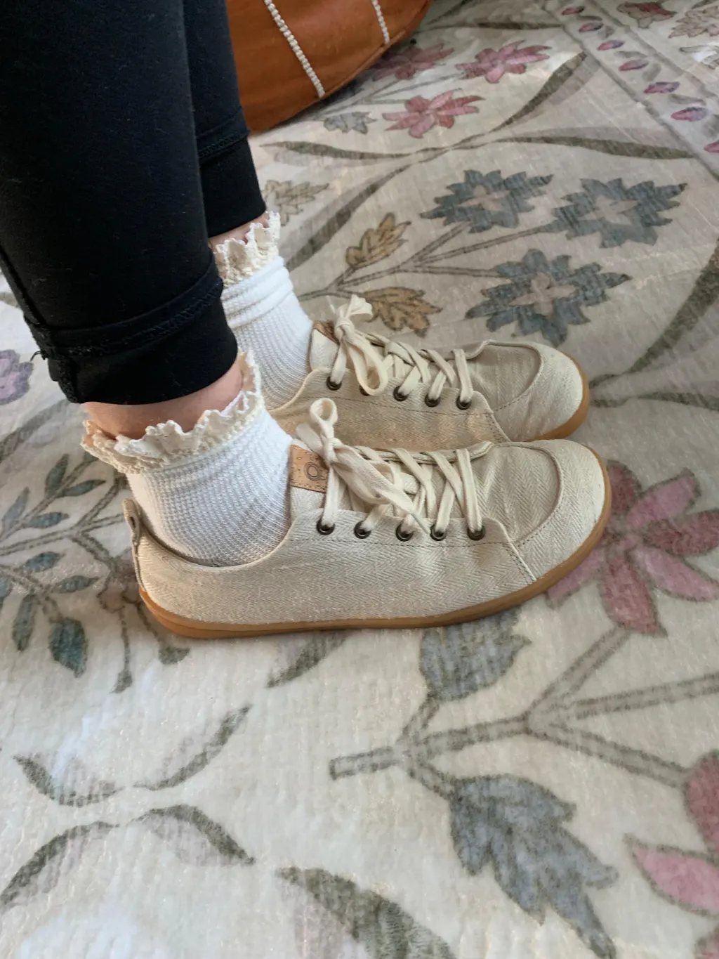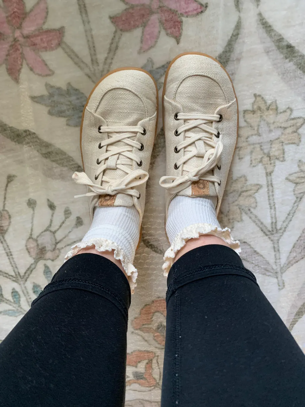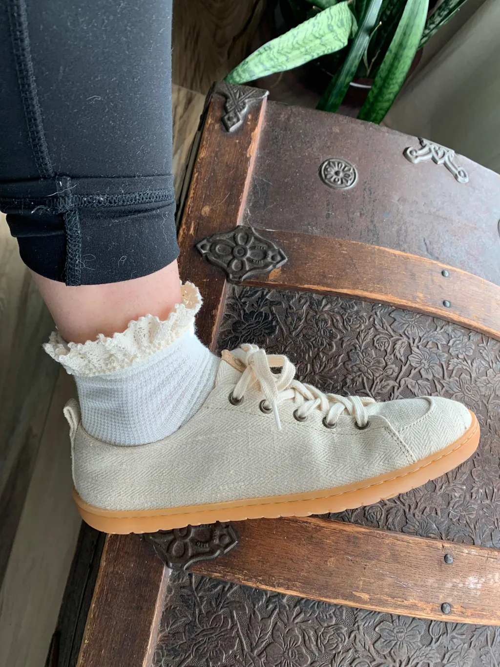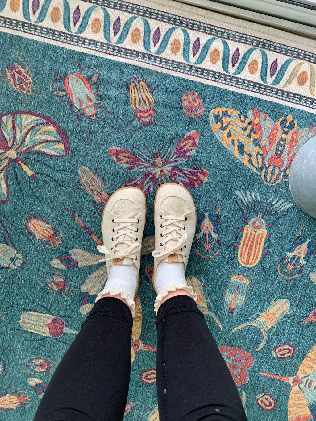 So as the story goes, my beautiful linen wildling sneaker wore out and needed to be replaced. With all the tariffs, I decided to try something else. I’d been looking at Muki’s for a while, but left it alone because I didn’t neeeeed them. I finally ordered a pair, and they’re so cute 🥰 they have a comfy fit and good room for my high instep, but not too ridiculous that the laces are touching on either side. I’m a women’s 8/39. I always order a 39 in every shoe no matter what the US equivalent is, works every time! My only complaint is that for the price paid, they should come with a thin insert like wildlings. I’ll probably order them separately or just cut some wool.