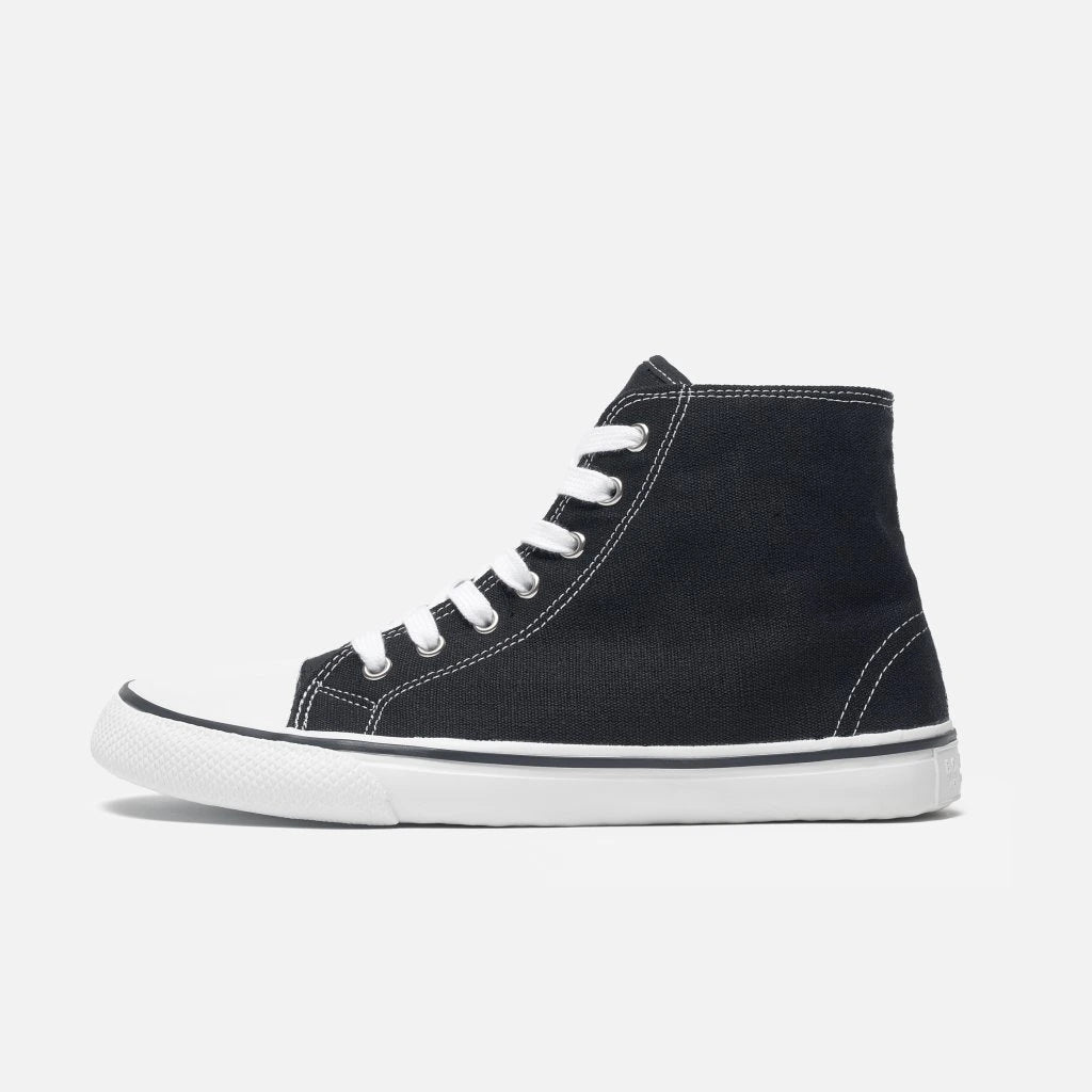 The Orik is for people who don't want pinched toes, but still want the timeless sneaker look. These high tops are made of 100% hemp canvas with a natural rubber outsole. Healthy and sustainable, these are shoes that love you (and the Earth) back.