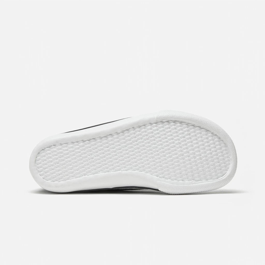 White Bohempia Herlik canvas sneakers with rubber soles. The sneakers have a white toe cap and a black outline around the white rubber soles. Left sneakers is shown facing left against a white background.